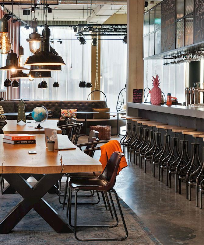 Beleef Moxy Amsterdam Houthavens - Een trendy hotel in de klimaatneutrale hotspot van de stad. Laat je creativiteit de vrije loop tussen de industriële ontwerpen en adembenemende uitzichten op de Amsterdamse haven. Krijg alles wat je wil en niets wat je niet wil. Verblijf in de moderne, industrieel ingerichte hotelkamers met kamerhoge ramen, ruime inloopdouches, razendsnelle, gratis wifi en 43-inch smart-tv's. Ontspan in de 24/7 bar met lokale Grab-n-Go-opties en cocktails. Wij trakteren op het eerste drankje! Relax in de Jungle Library en bekijk de grote schepen in de DJ Lounge. Neem een duik in het overdekte zwembad of spring in de sauna voor stomend plezier. Sessie in de 24/7 Retro Gym? Spa behandelingen? You got it! Laat je inspireren in de 3 speelse, op de bovenste verdieping gelegen, meetingzalen, die met de 1,5M in acht genomen, plaats bieden aan maximaal 20 deelnemers. Speel met ons en kom ermee weg #atthemoxy.